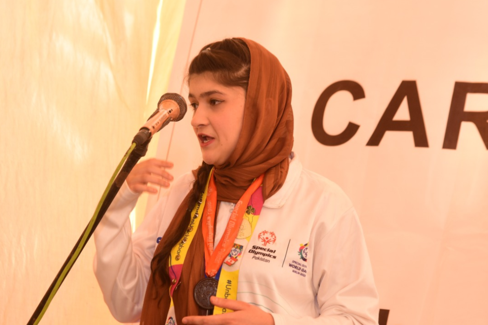 An endearing mime performance by the center’s talented children, introduced and supported by Ms. Tayyaba, captivated the audience, leaving them both in awe and tears. Among the performers, Suneha – a former student and Special Olympics participant – credited the center for playing a pivotal role in turning her dream into reality, while another promising participant was honored with a sports kit and racket to help him actualize his desire to excel in sports. Ms. Rubab, Regional Manager Special Olympics, expressed gratitude for the steadfast support she receives in her role as a coach, emphasizing that the success of these endeavors is truly a collective effort.